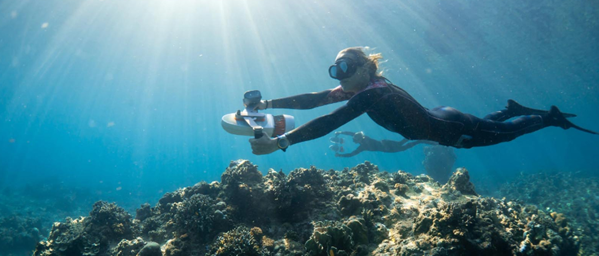 With WhiteShark Tini’s unique modular design, you can easily attach two scooters together to double the power and double the fun. Connecting two scooters together allows experienced divers to fly through the waters, making it the fastest dual-motor scooter on the market.