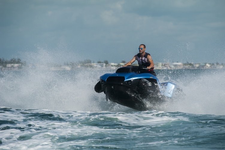 The Quadski hull provides a stable planning surface and lateral stability for responsive handling on water. The proprietary Gibbs jet drive is lighter and more compact than traditional marine industry water jets and provides high levels of thrust and maneuverability on water, propelling the Quadski to planning speed in seconds