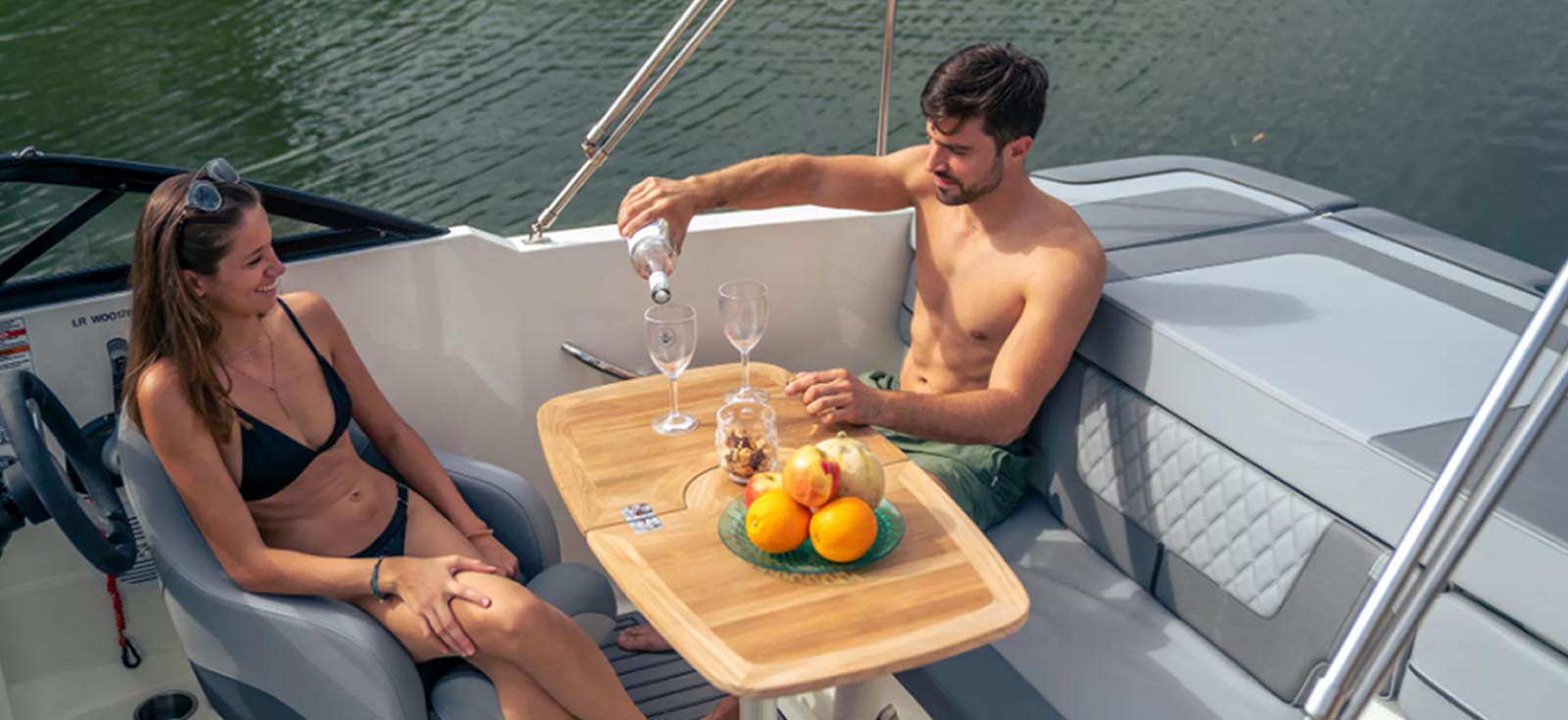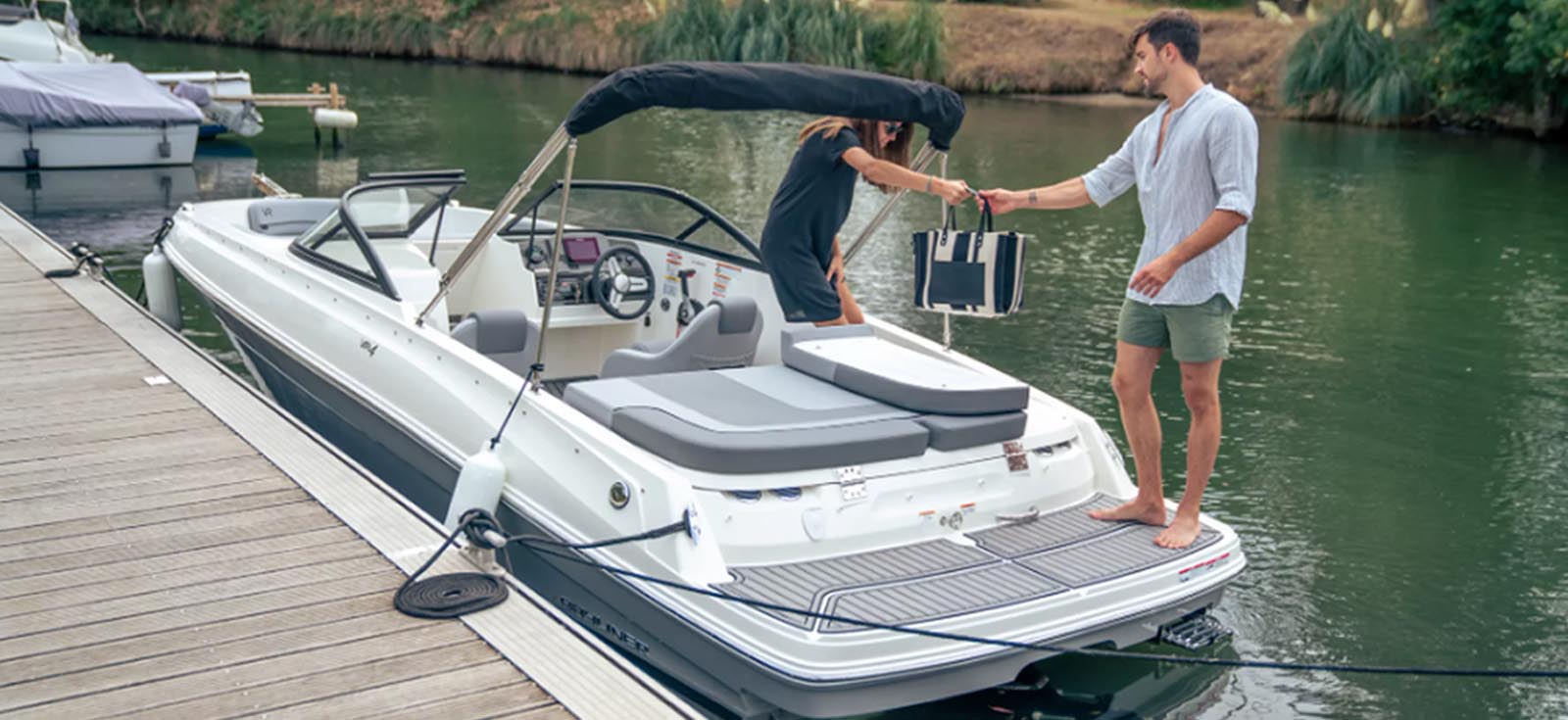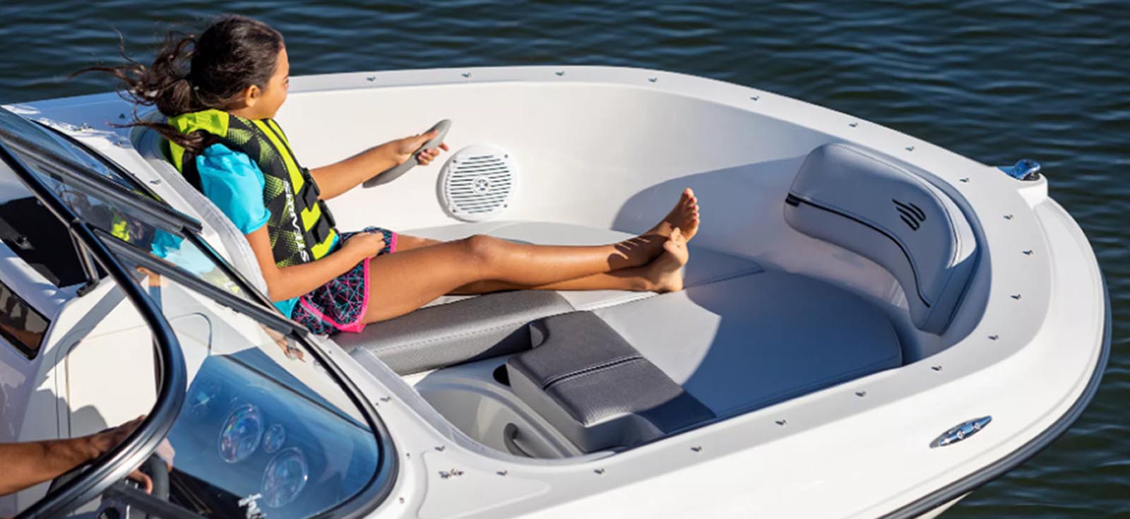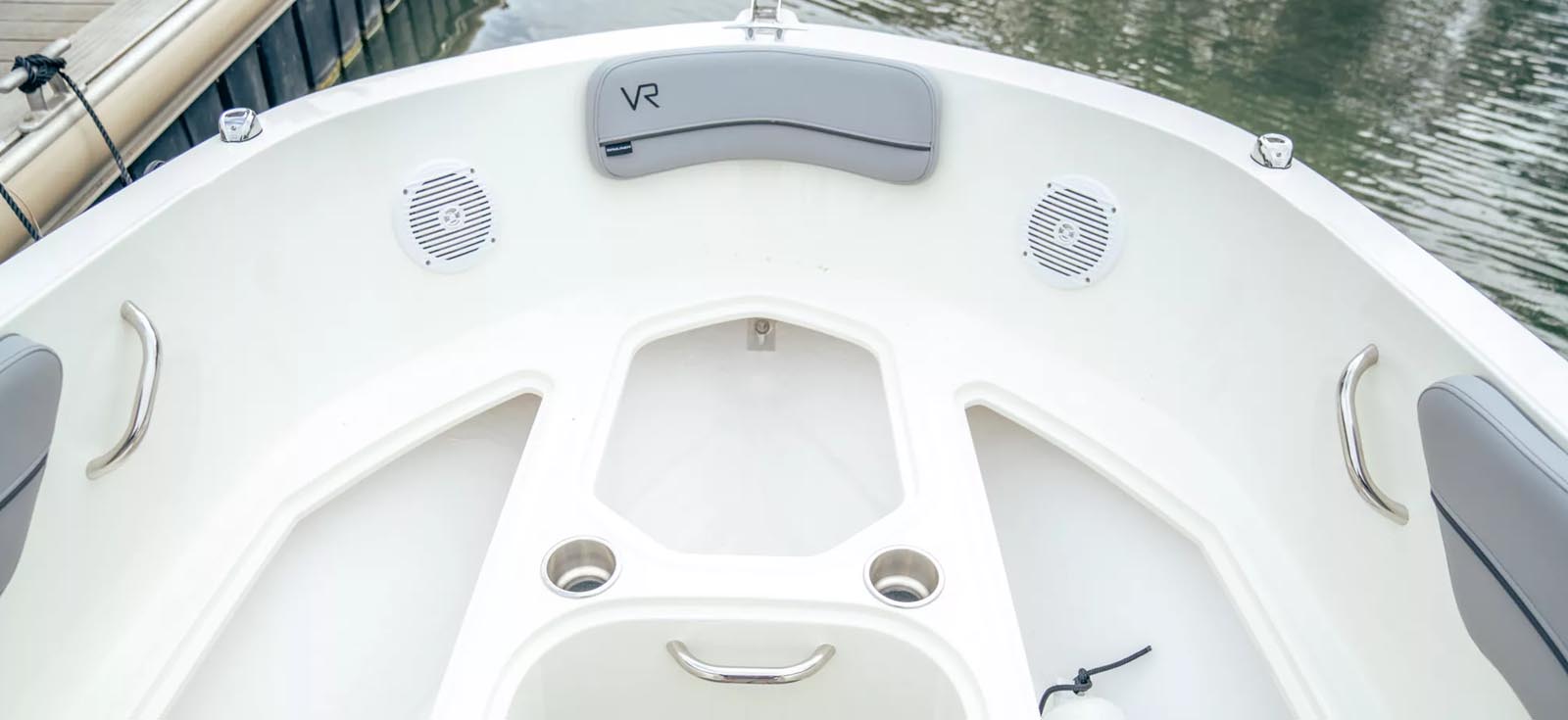 The latest in our VR Series of highly evolved bowriders the VR4 is easy to tow launch and store and really fun to use. The smallest VR Series model delivers plenty of interior space thanks to our BeamForward design which carries the full beam further forward for more comfort and capacity than traditional pointed bows. Our AftAdvantage design increases the rear seating area by shifting it to the aft-most point of the running surface allowing the swim platform to extend beyond that. That means more room for comforts like movable backrests for versatile seating configurations available bow wind block and optional filler cushion that together create an additional bow seat optional sun pad cushion inserts that expand the sunbathing area and plenty of convenient storage throughout.