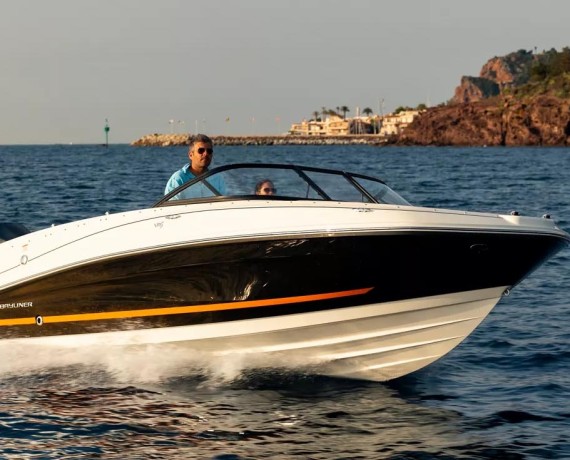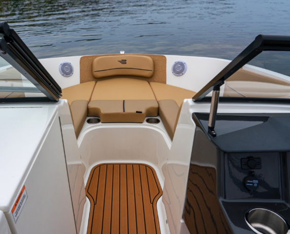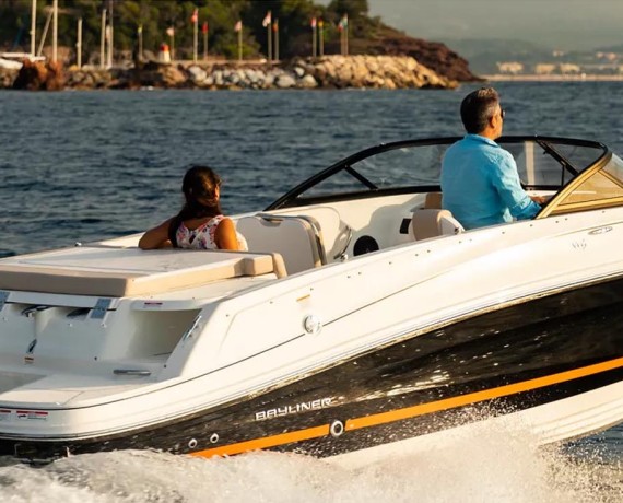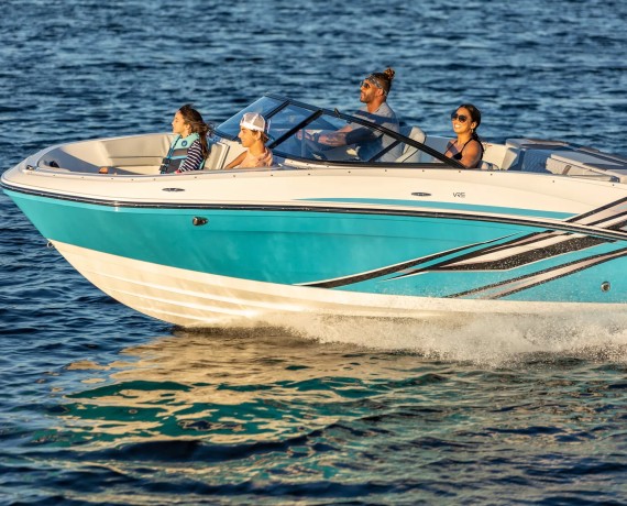 The VR5 OB builds on Bayliner's V-bottom bowrider family while adding form and function. Forward, the boat employs our signature BeamForward design which carries the full eight feet of beam farther toward the front of the boat. The self-bailing cockpit features our AftAdvantage design that increases the aft seating area by extending it to the aft-most point of the running surface then adding the swim platform beyond that. This keeps the platform apart from the usable interior space rather than encroaching on it, even with an outboard engine mounted. The result is a boat that maximizes space and value without compromising any of the fun.