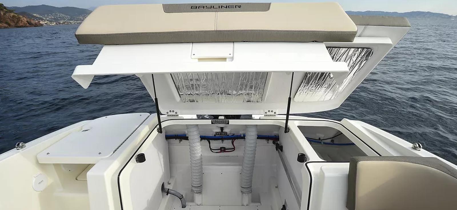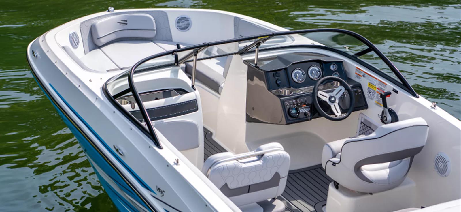 The VR5 builds on Bayliner proven V-bottom bowrider heritage while adding form AND function. Forward the boat employs Bayliner category-leading BeamForward design which carries the full 8 feet of beam further forward in the boat than has been traditionally done. The self-bailing cockpit features Bayliner new AftAdvantage design that increases the aft seating area by extending it to the aft most point of the running surface then adding the swim platform at the end of the running surface. This keeps the platform apart from the usable interior space rather than encroaching on it regardless of whether you choose outboard or sterndrive power. The result is a boat that maximizes space and value like never before.
