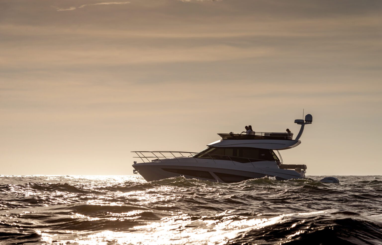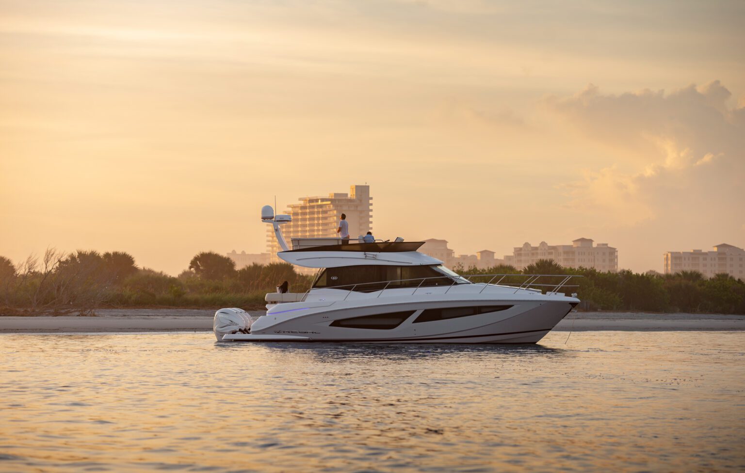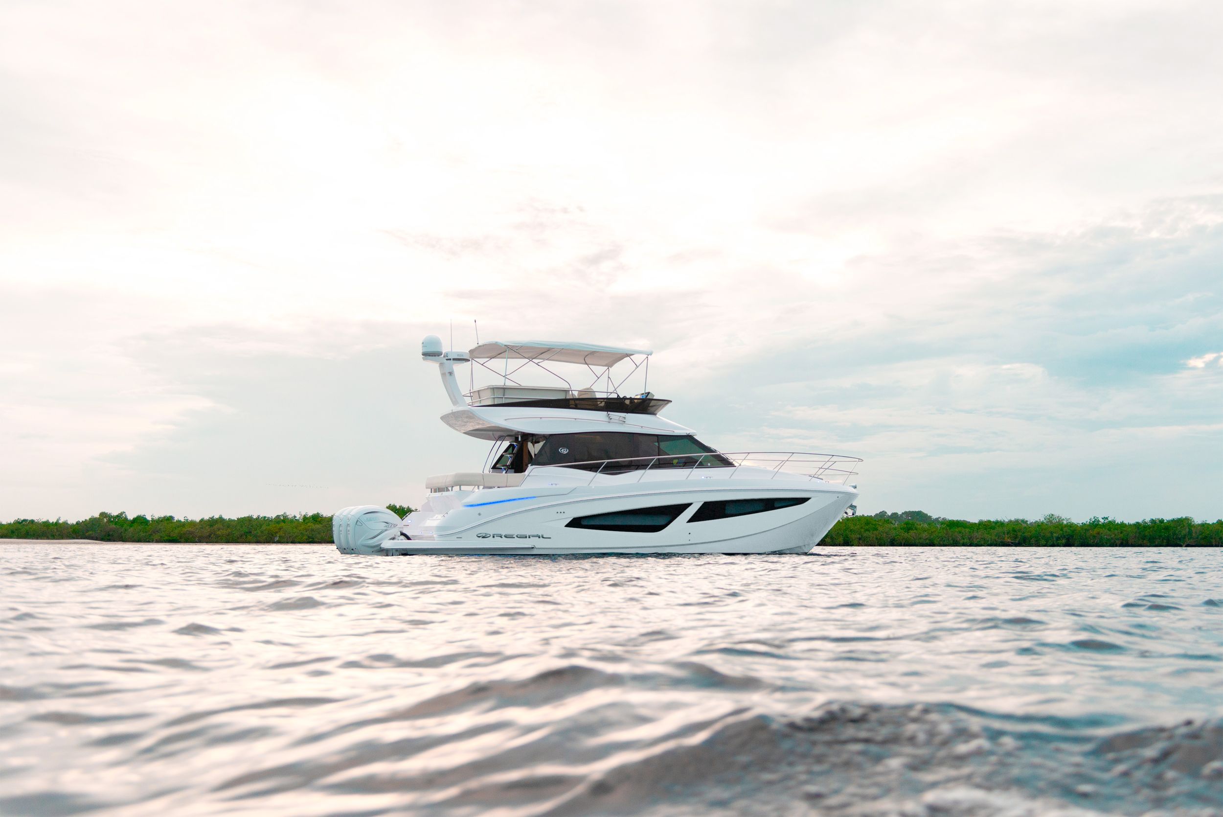 The Regal 42 FXO is the ultimate outboard-powered sport yacht. And with its versatile, pull-up, easy-to-maintain motor, it makes an excellent sandbar-hopper, too. Exceptional performance, outboard versatility and high-end luxury set the stage for endless entertainment and relaxation on the water—regardless of your destination.