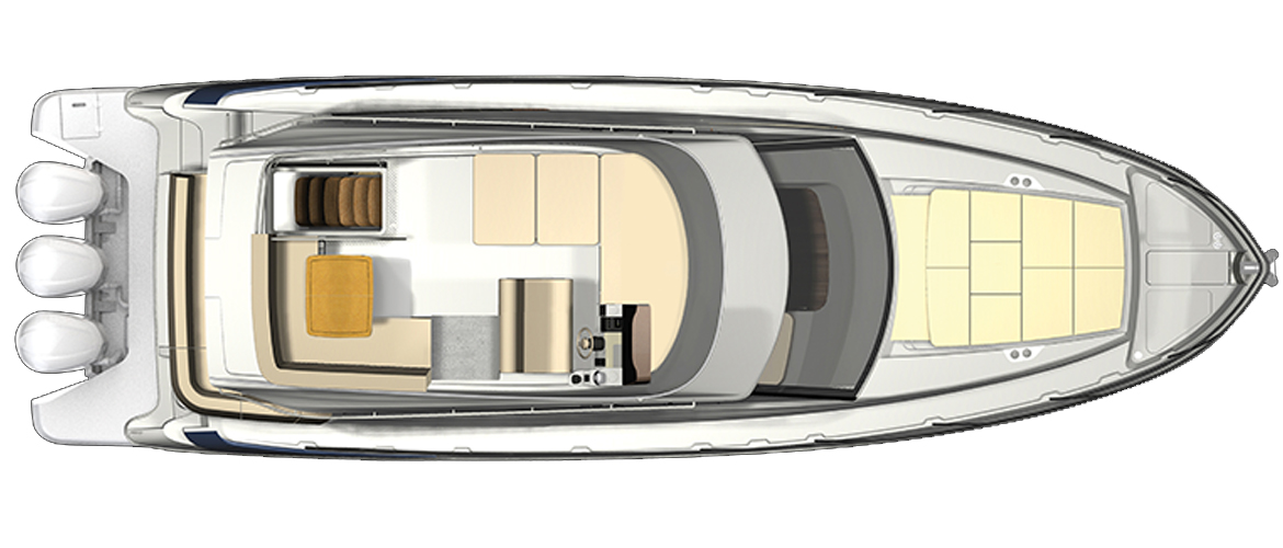 The aft cockpit features an outdoor refreshment center with a smokeless electric grill and refrigerator. For added entertainment capability, slide open the glass enclosure and your outdoor refreshment center combines with your salon galley.