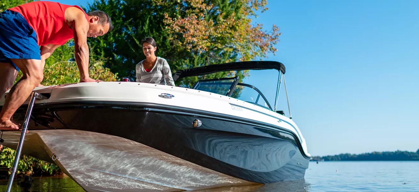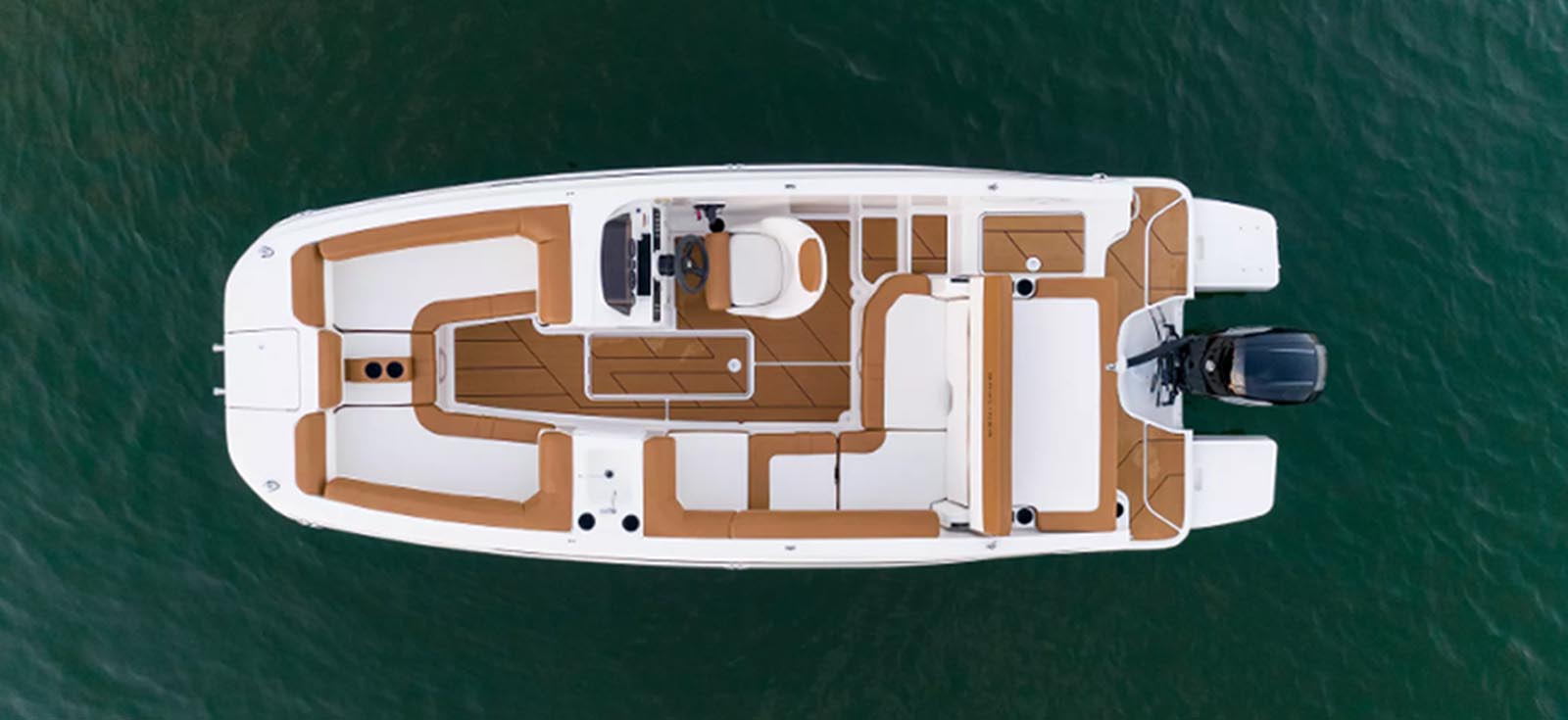 This versatile outboard model offers three interior floorplan options to suit your family needs. Choose from a side console layout with maximum seating side console with an entertainment center and sink or a dual console cockpit with full windshield. All three interiors feature rich upholstery lots of storage and a transitional aft lounger for total comfort. The exterior is equally appealing thanks to sleek hull sculpting and stylish shear lines.