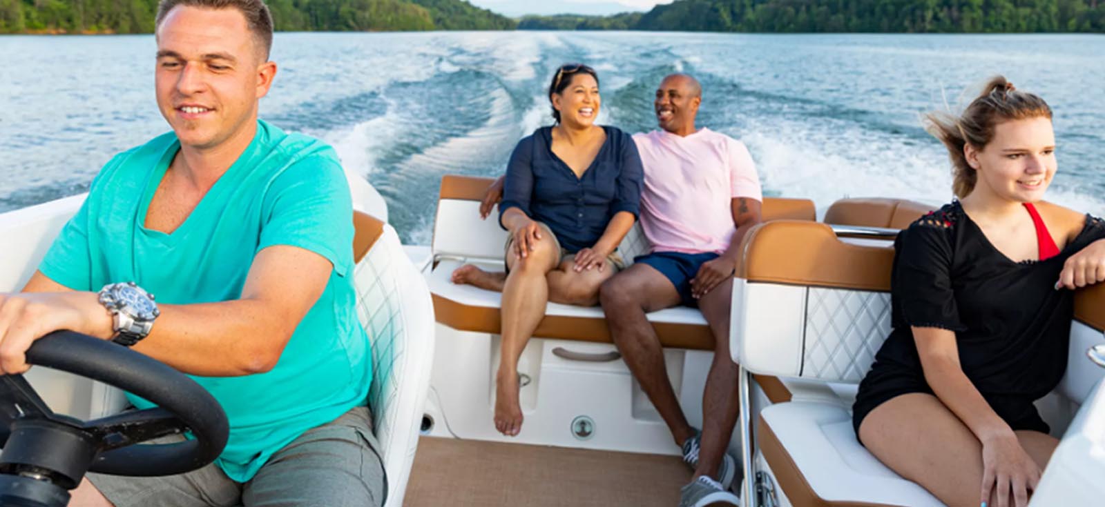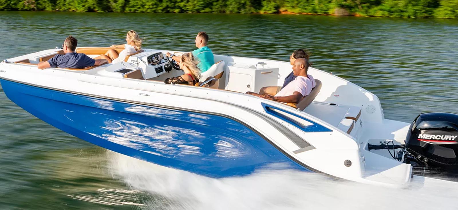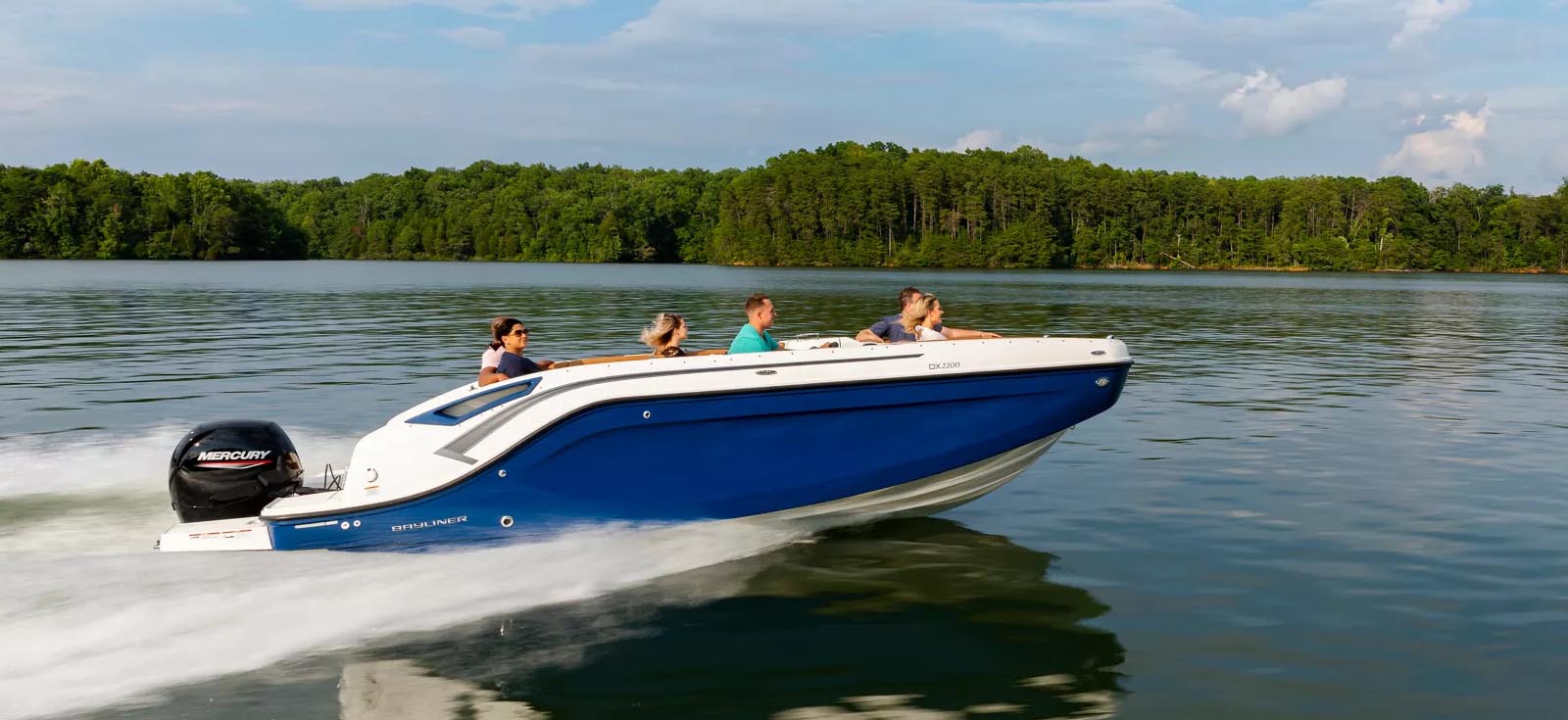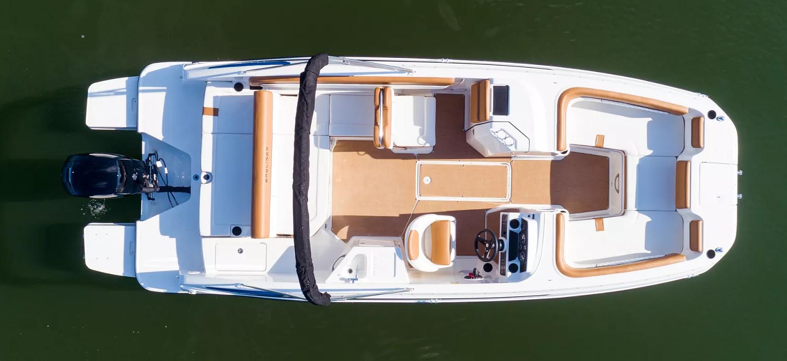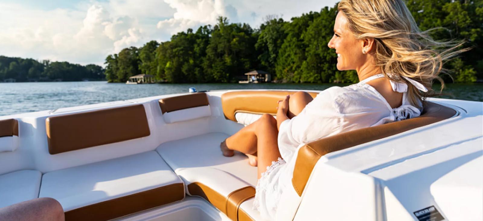This family-friendly sterndrive model combines all the most popular aspects of the DX Series. The sleek exterior is complete with hull sculpting and stylish shear lines while the interior is loaded with all the comforts of home. The plush upholstery features quilting with black welt plus transitional cockpit and transom seating offer total lounging comfort while facing forward or aft. When underway the wider V-hull offers stability and a high freeboard keeps everyone safe and dry.
