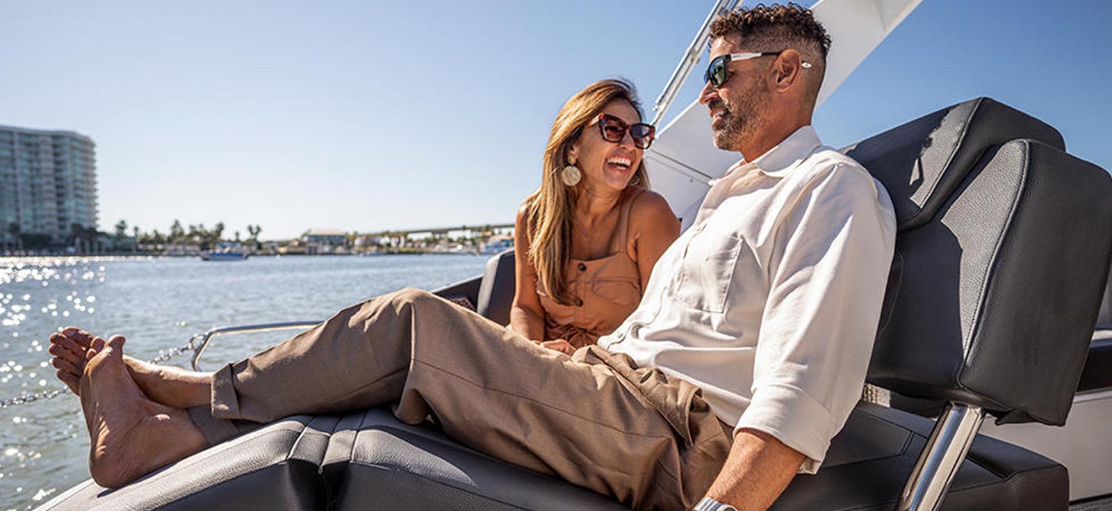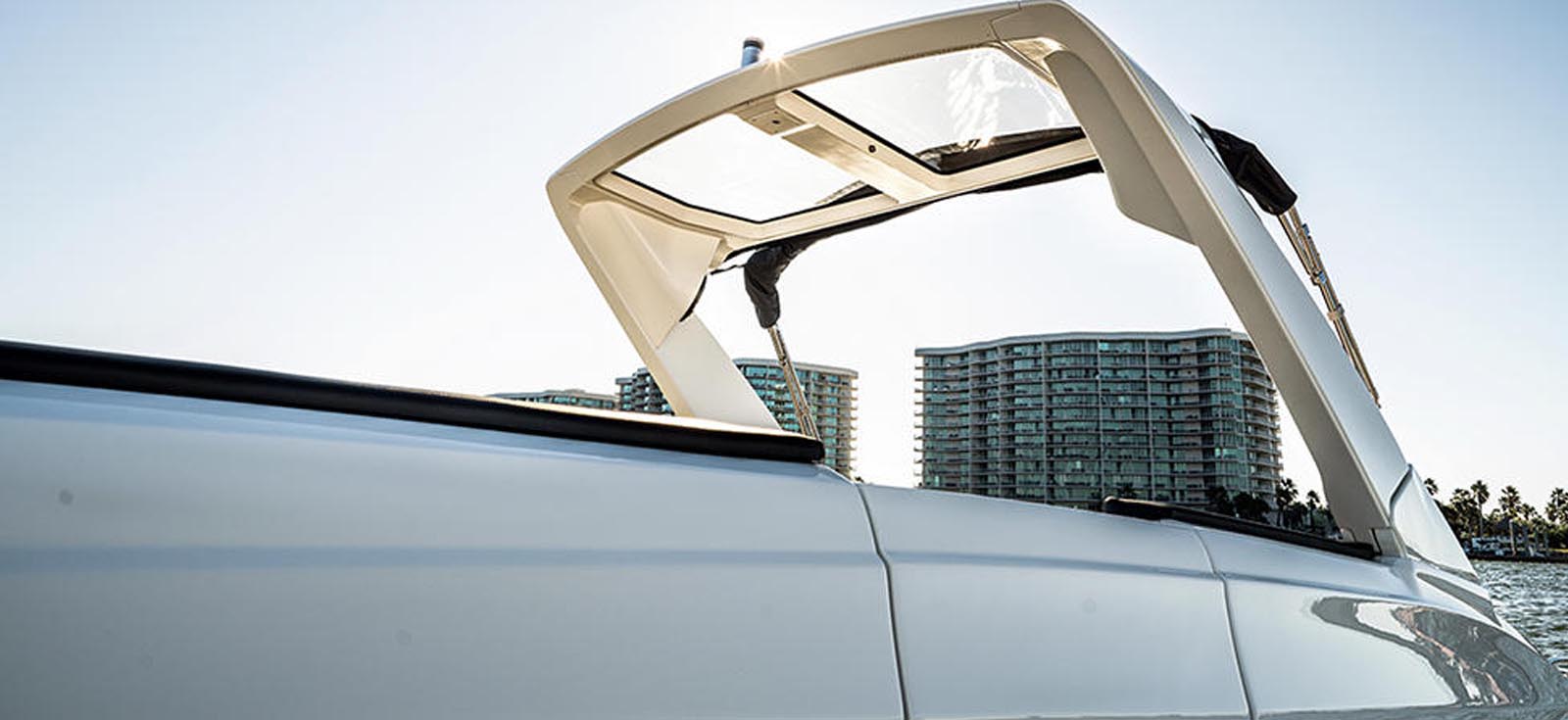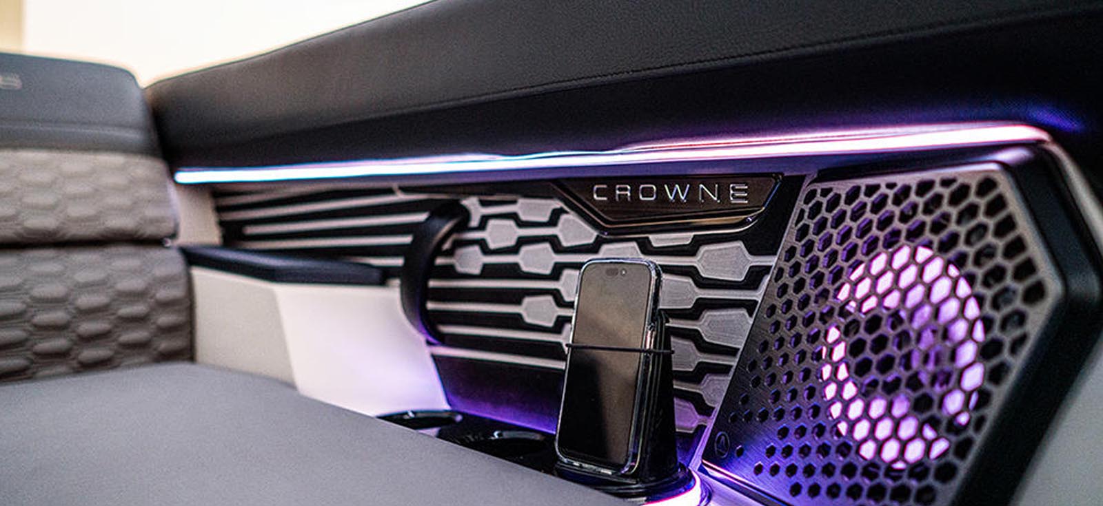 The Crowne demands attention on the water. Stunning fiberglass fencing wraps the playpen with peerless style, and the thoughtful interior design combines crisp details and understated elegance for a boat like nothing you've ever experienced.