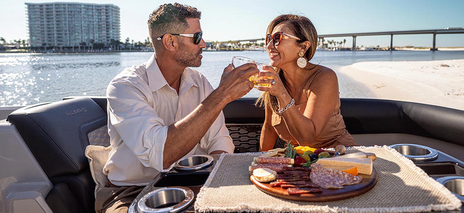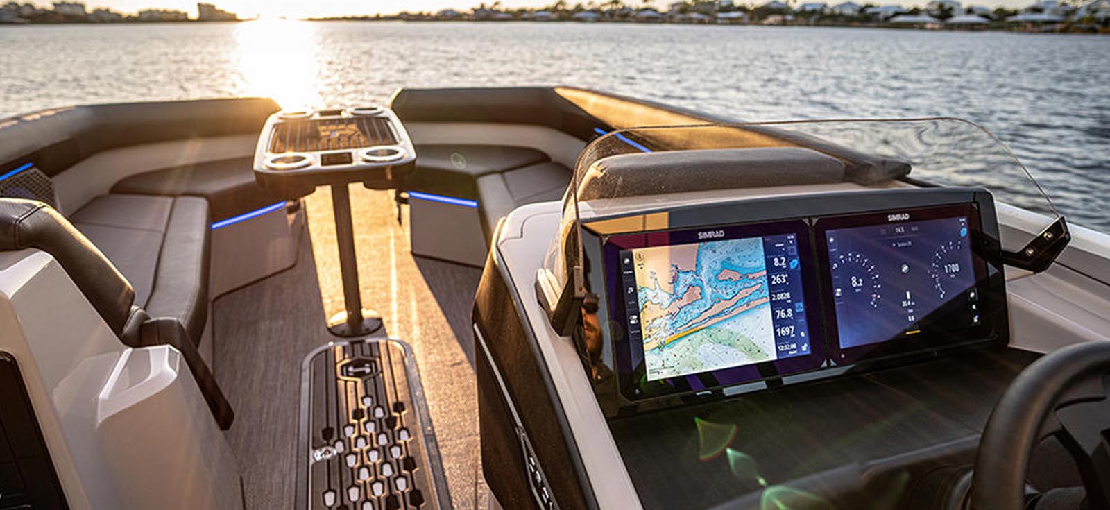User-friendly boating technology is standard on the Crowne. You'll enjoy dual Simrad NSX12 screens and live-data connectivity through the My Harris mobile app, and you'll discover that onboard technology has never been more intuitive.