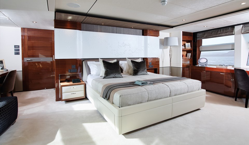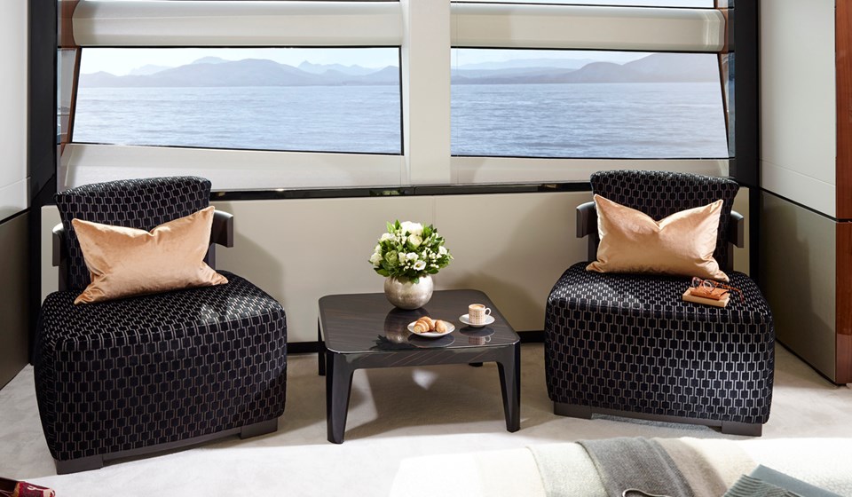 From the moment you step inside, you’ll feel drawn in by her ambience, a beautiful realisation of your vision. Space is found in abundance, made all the more enjoyable by vast panoramic windows. For your comfort, acoustic insulation creates a cocooning ambience whether at rest or at sea. And for your guests, exceptionally well-appointed accommodation awaits them after a day of relaxation.