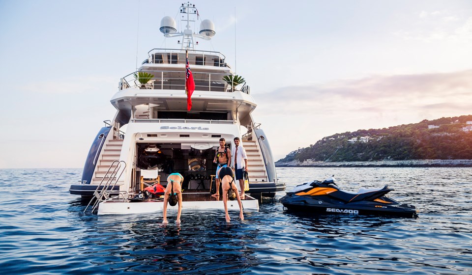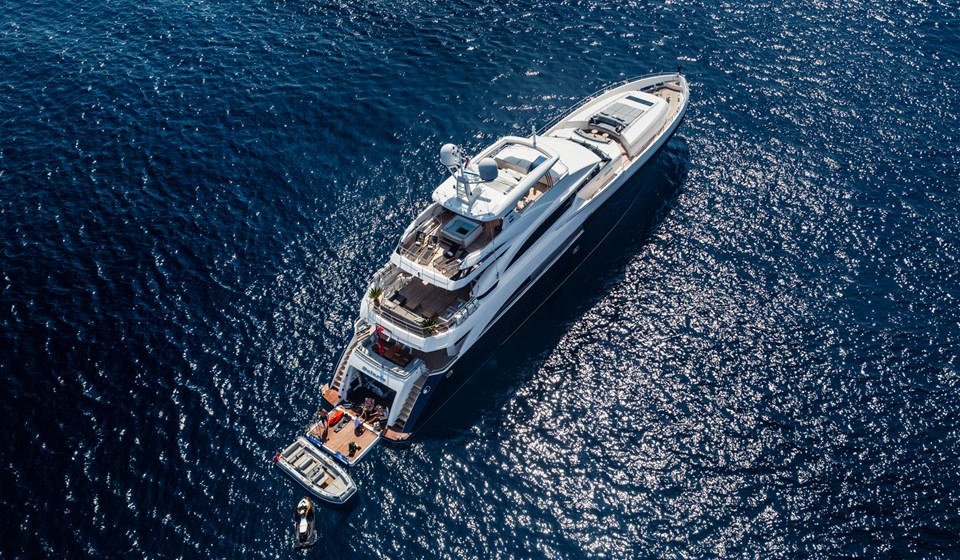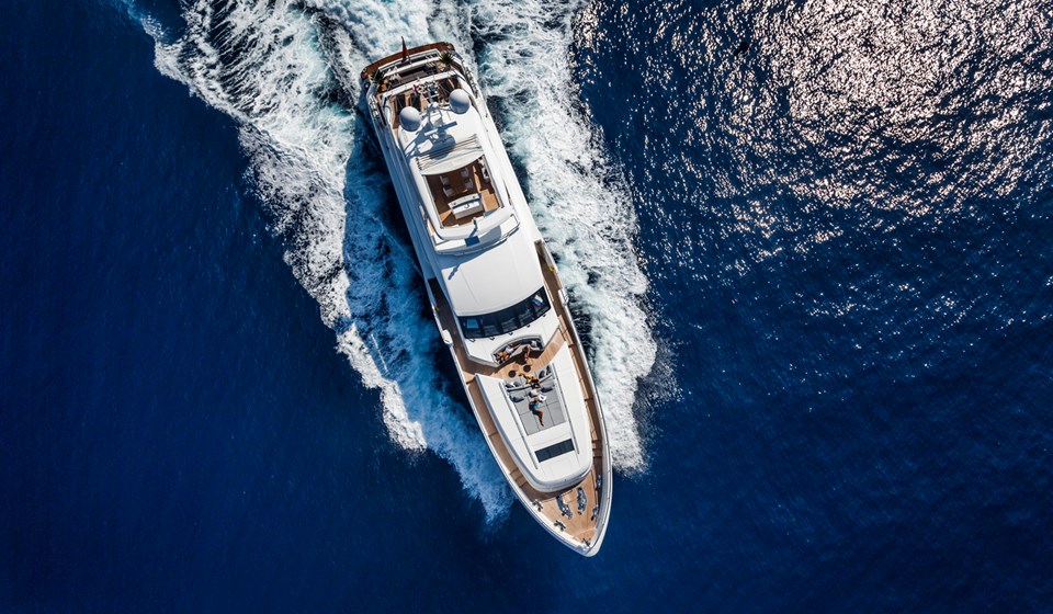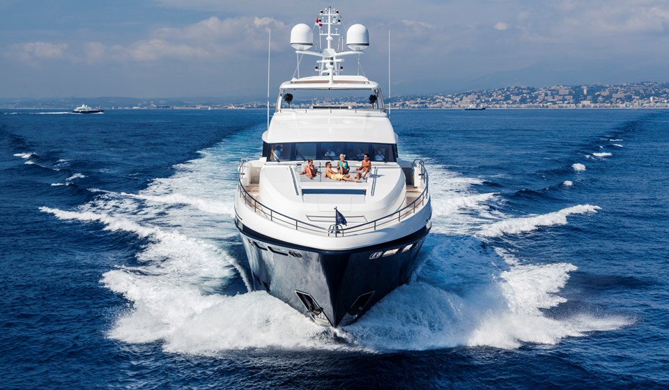 The commanding facade of the tri-deck 40M is quite breath taking. Her elegant powerful lines flow around sublime architecture. Secluded sunbathing retreats, a spa bath, beautifully proportioned dining areas, and a walk-in beach club are just some of her luxurious features. Everything to ensure that getting away from it all and spending time with friends is a true pleasure.