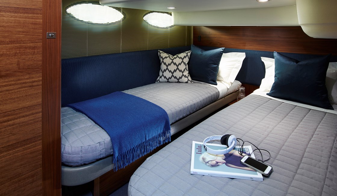 Beautifully styled throughout, the 43 blends inviting comfort with cutting-edge technology. The spacious main deck features a well-equipped galley with a generous seating and dining area aft that can be converted to a double berth for occasional guests. Below deck there are two luxuriously-appointed en suite cabins, a forward master stateroom and a twin guest cabin that can be specified with electrically-sliding berths to convert into a double when required. She’s a class-leading yacht that continues to set the standard.