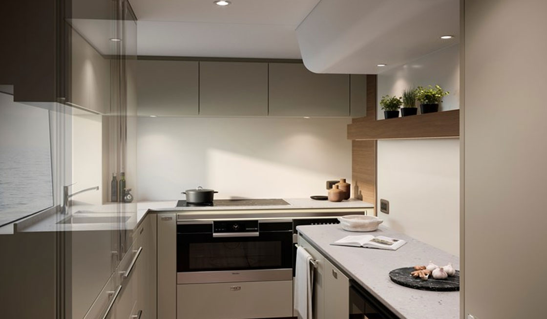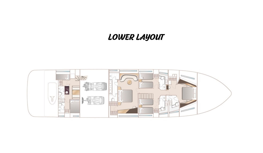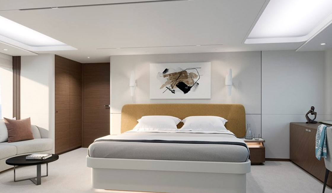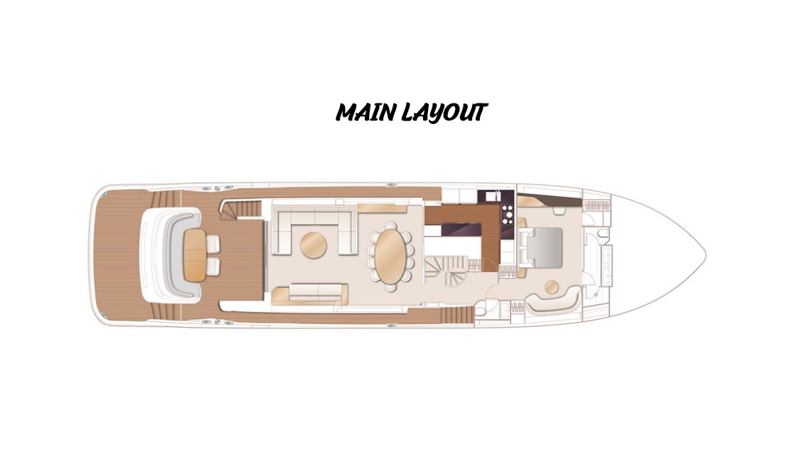 Configurable layout options throughout and a new interior design language await, with the guidance of your own Princess Design Consultant to assist with defining your vision. With an interior volume comparable to a Princess M Class, her main deck features a full beam master stateroom with skylights and is complemented by a further four wellappointed en suite guest cabins. Her generous crew accommodation includes an en suite Captain’s cabin with double bed.