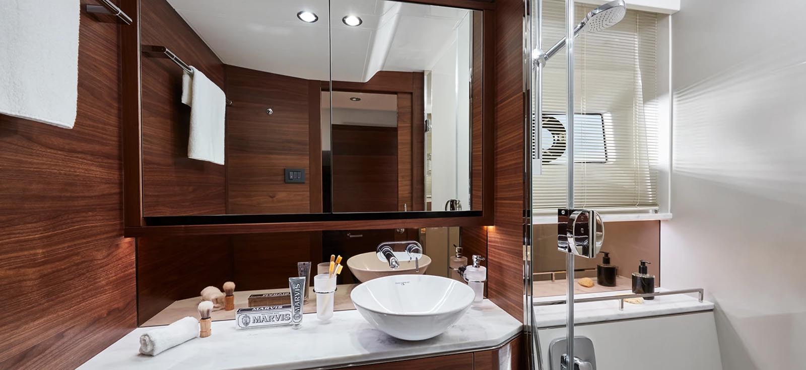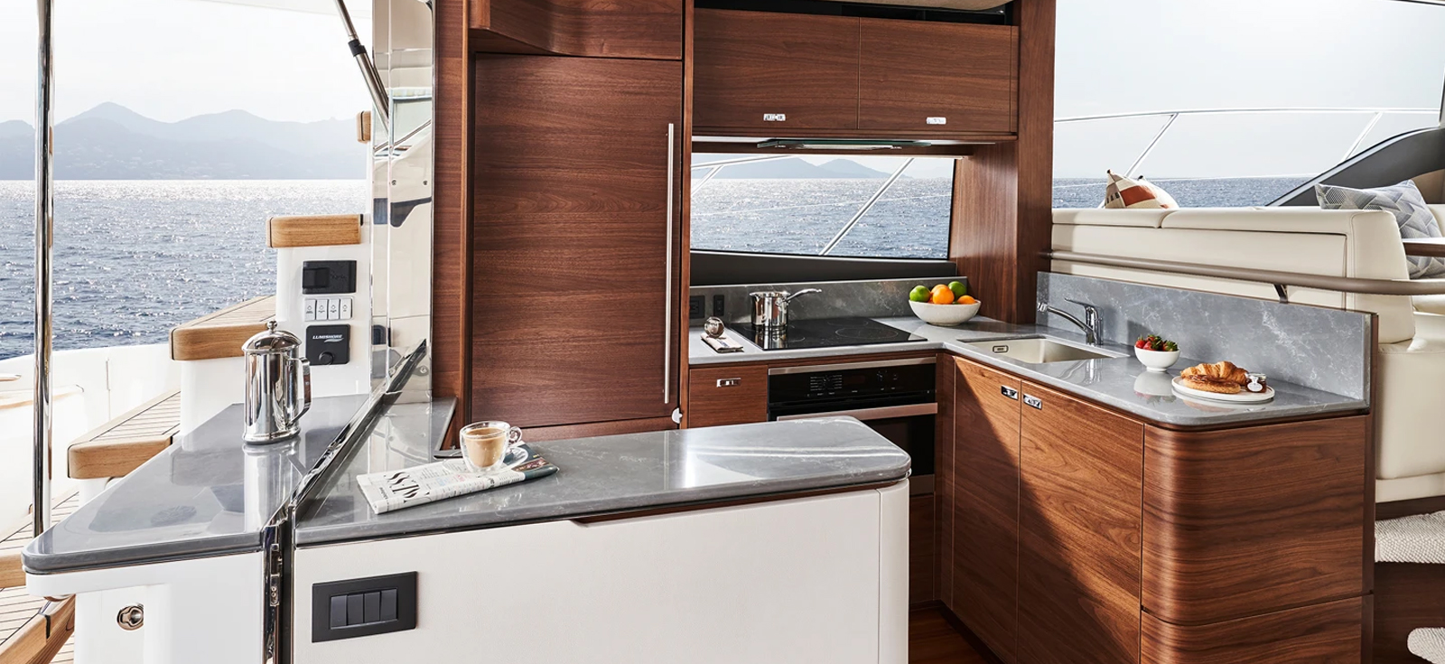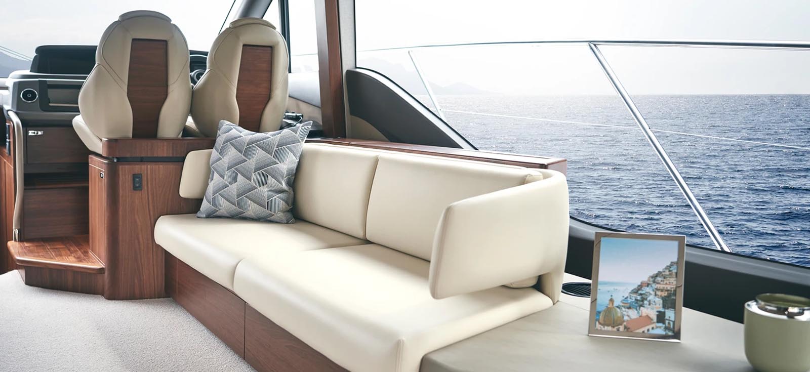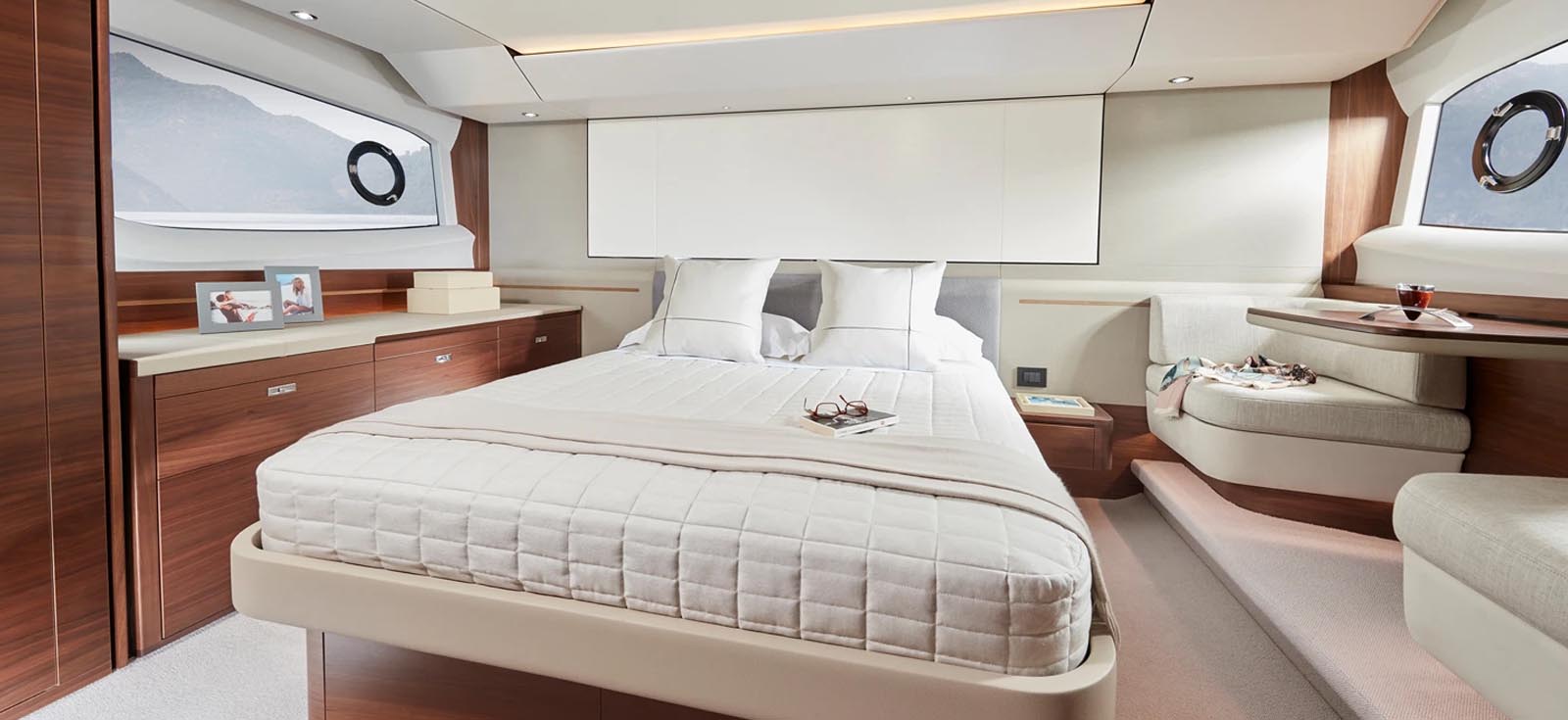 Equipped with twin Volvo D13-900 engines providing speeds up to 33 knots, in addition to a deep-V resin-infused hull, the F55 delivers dynamic and effortless seakeeping.