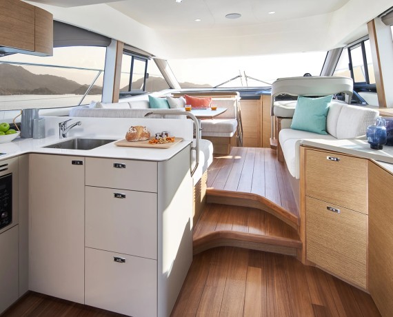The F45 is packed with technical innovations that ensure this compact yacht feels as spacious above deck as it does below. The exceptional F45 flybridge delivers unparalleled space, quality and flexibility for the ultimate on-water experience.
