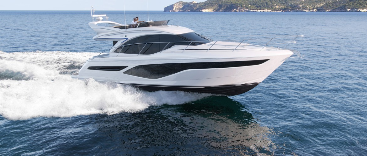 Featuring the latest F Class exterior styling, and advanced technology on-board, the F50 flybridge yacht delivers dynamic performance at sea.