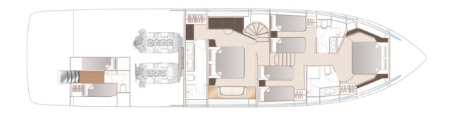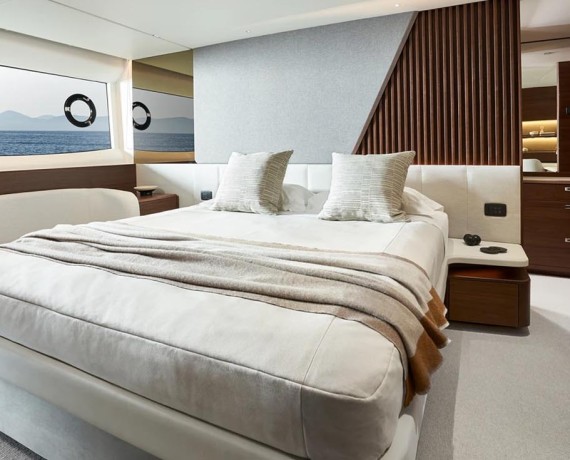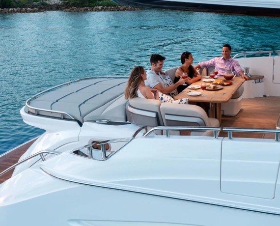 Dynamic extended styling lines synonymous with the Princess S Class are featured onboard the S72. Equipped with twin MAN V12 engines at 1650 or 1800 horsepower and a resin-infused deep-V hull, she delivers dynamic performance and smooth handling at speeds of up to 36 knots.