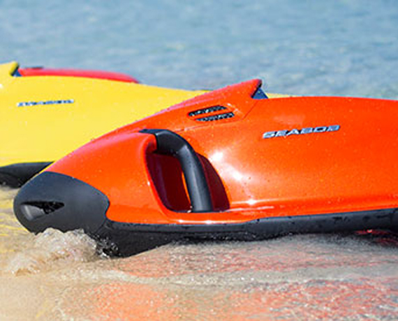 In addition to its powerful performance, the SEABOB F5 SR is equipped with a valuable Chrome Package as standard. Moreover, the SEABOB F5 SR has two rear fins for driving stability. These rear fins once again improve the manoeuvrability during diving excursions and emphasise its sporty design.