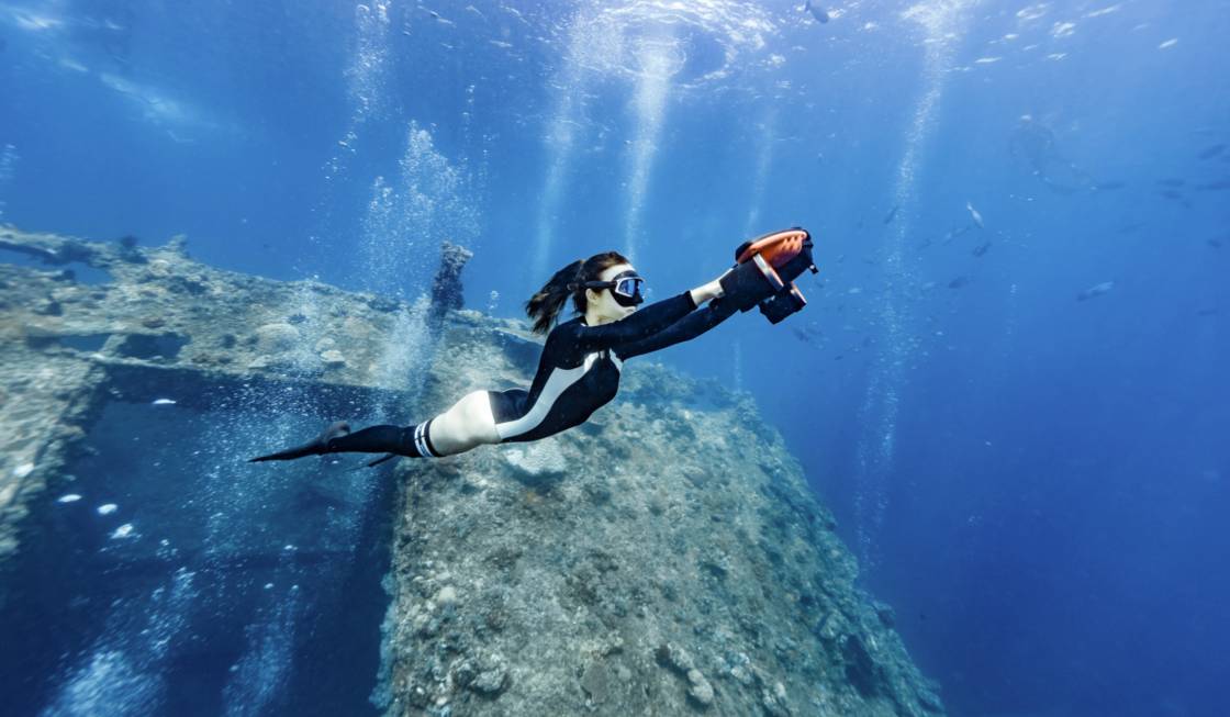 Navbow+ is the fastest among our underwater scooters with 3 speed switches of up to 2m/s. With our advanced and patented waterproof batteries, it can operate at depths of up to 40m with a long-lasting battery of up to 60 minutes.