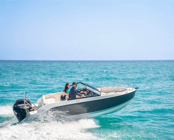 Rarely has the phrase “small but mighty” been so appropriate to describe a boat. With an overall length of 5.33 meters, this boat is the smallest one in our bowrider family. But it is one that knows how to punch well above its weight, thanks to its fuel tank capacity and powerful engine configuration. Don’t forget to take advantage of the cockpit sun lounge that can be deployed within seconds.
