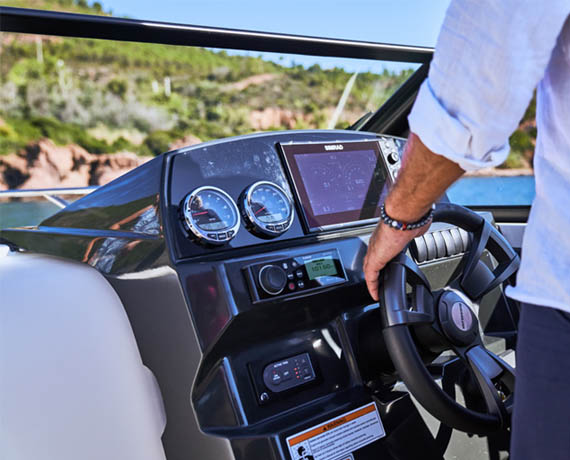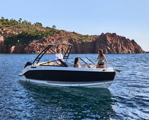 The Activ 675 Bowrider is a great boat to stay in touch with the water. Up to 7 people pick a spot in the bow area or in the cockpit. Not a single inch of deck surface is left unused, yet the designers still found a way to integrate a compact, functional cabin.