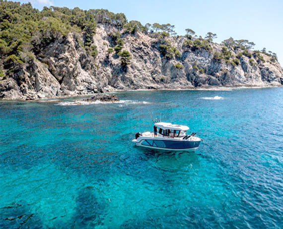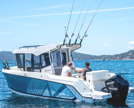 Fishing isn’t just a hobby, it’s a lifestyle, and that’s abundantly clear in the all-new 705 Pilothouse. A free-flowing cabin with an ergonomic, spacious design greet you for your fishing journey on board. The sleek, sporty hull is designed for the ultimate in comfort on open ocean or local lakes with best-in-class amenities. Control your vessel from the captain’s seat or the second helm on deck and find both fish and safe harbour with top-quality electronics. Engine options up to 225hp and an seven-person capacity ensure a fun trip for everyone on your next angling outing.
