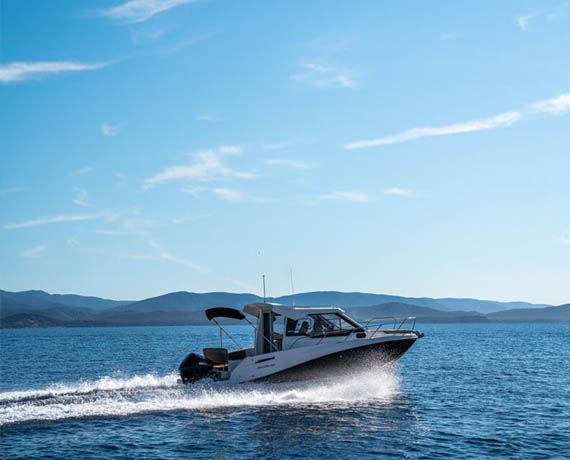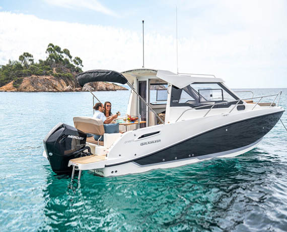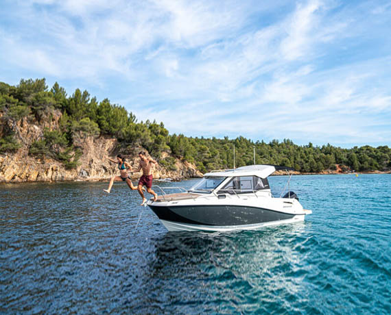 The Activ 705 Weekend is the most compact model in the Weekend range. It’s the only one that you can still transport on a trailer. Also, its size makes it easier to find a mooring space in a marina. At the same time, it does fit 8 people and 2 can spend the night.