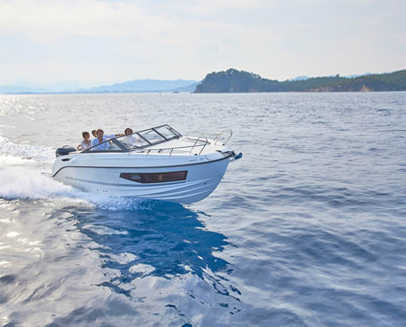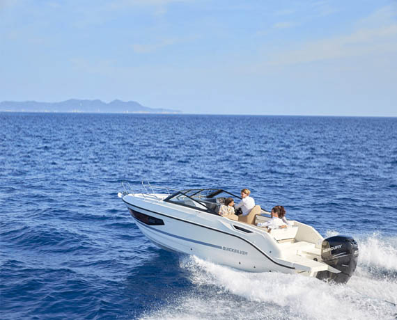 Break away for a day trip or a weekend on the water. The Activ 755 Cruiser’s deep cockpit and full windscreen keep you and your passengers safe and dry during the ride. Inside, the cabin’s wide windows offer the best views you’ll ever find in a 7-meter boat. Customisation is key. The cockpit area offers 3 configurations, several packs allow for significant upgrades of the boat’s accessories and there’s a whole range of Mercury engines available.