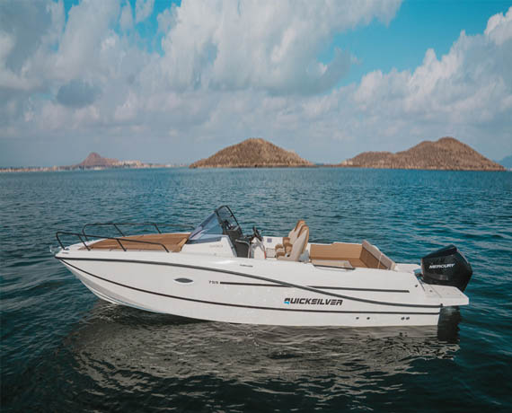 The perfect combination of performance, comfort and versatility in the 7m+ boat segment, Quicksilver’s Activ 755 Sundeck is designed with sun, relaxation and enjoyable cruising in mind. With a range of versatile configurations that offer great sun lounging as well as seating accommodation facilities, the Activ 755 Sundeck is designed for fast day cruising and water sports for up to eight people and comfortable overnighting for two.