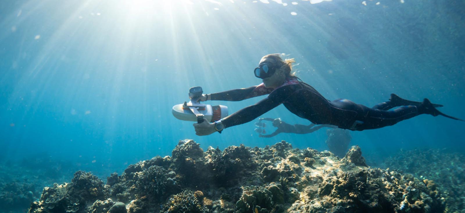 With WhiteShark Tini’s unique modular design, you can easily attach two scooters together to double the power and double the fun. Connecting two scooters together allows experienced divers to fly through the waters, making it the fastest dual-motor scooter on the market.