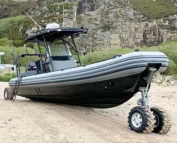 This amphibious boat gives you the ability for a rapid transition between land and sea, allowing an extremely fast deployment and an increased reach of your patrolling area.
