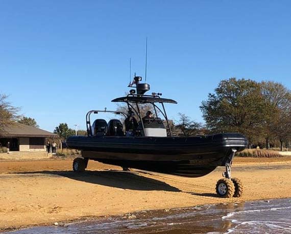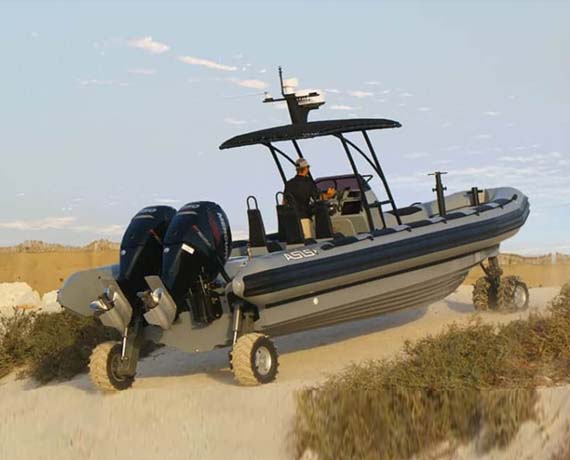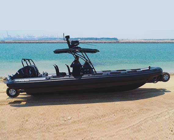 The 9.8m ASIS Amphibious boat is the biggest Amphibious RHIB ever built. Its large size offers a great platform for full customization and design layout. It can carry many passengers and has a large storage space.