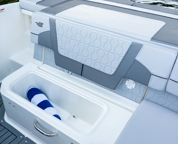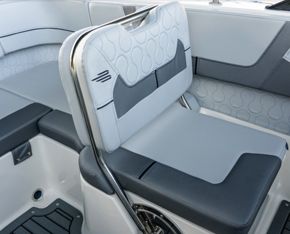 The VR5 builds on Bayliner proven V-bottom bowrider heritage while adding form AND function. Forward the boat employs Bayliner category-leading BeamForward design which carries the full 8 feet of beam further forward in the boat than has been traditionally done. The self-bailing cockpit features Bayliner new AftAdvantage design that increases the aft seating area by extending it to the aft most point of the running surface then adding the swim platform at the end of the running surface. This keeps the platform apart from the usable interior space rather than encroaching on it regardless of whether you choose outboard or sterndrive power. The result is a boat that maximizes space and value like never before.