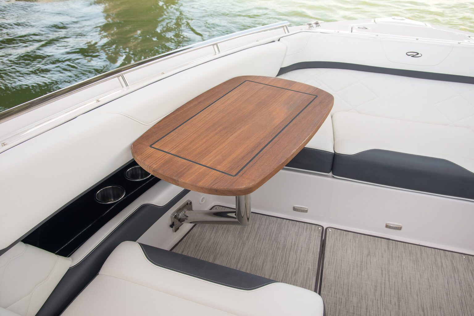 This spacious and comfortable seat is designed for seamless socializing and enjoyment. Simply flip the backrest aft to face forward or flip it forward to face aft. A queen bed with ample space tucked is neatly under the cockpit with LED accent lighting that adds a warm, luxurious feel.