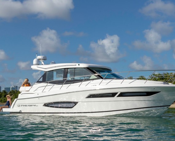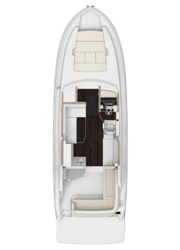 With storage under nearly every seat, in lockers, and even under the forward bed, you will always have a place for your gear. The 38 Grande Coupe features the most spacious forward stateroom in its class thanks to the centerline California Queen and walk-around space.