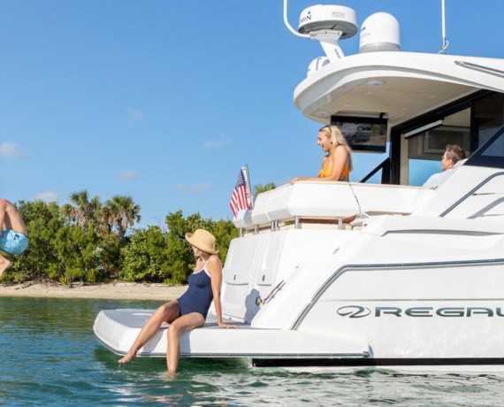 Lay back, enjoy the sunshine, or sit up and watch the water on the multiposition foredeck sunpad. The optional cabana is perfect if you love the view but want some shade. Enjoy a low-to-the-water swim platform that has room for the whole family and an abundance of storage at the transom.
