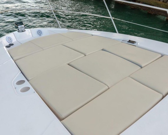 The 38 Grande Coupe was designed for clear views and natural light from the cabin to the upper salon. Thanks to large single-pane windows, the upper salon features 360° views, and with hull side windows, your cabin will be flowing with natural light.