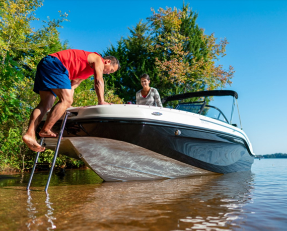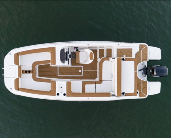 This versatile outboard model offers three interior floorplan options to suit your family needs. Choose from a side console layout with maximum seating side console with an entertainment center and sink or a dual console cockpit with full windshield. All three interiors feature rich upholstery lots of storage and a transitional aft lounger for total comfort. The exterior is equally appealing thanks to sleek hull sculpting and stylish shear lines.
