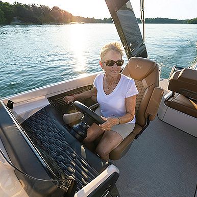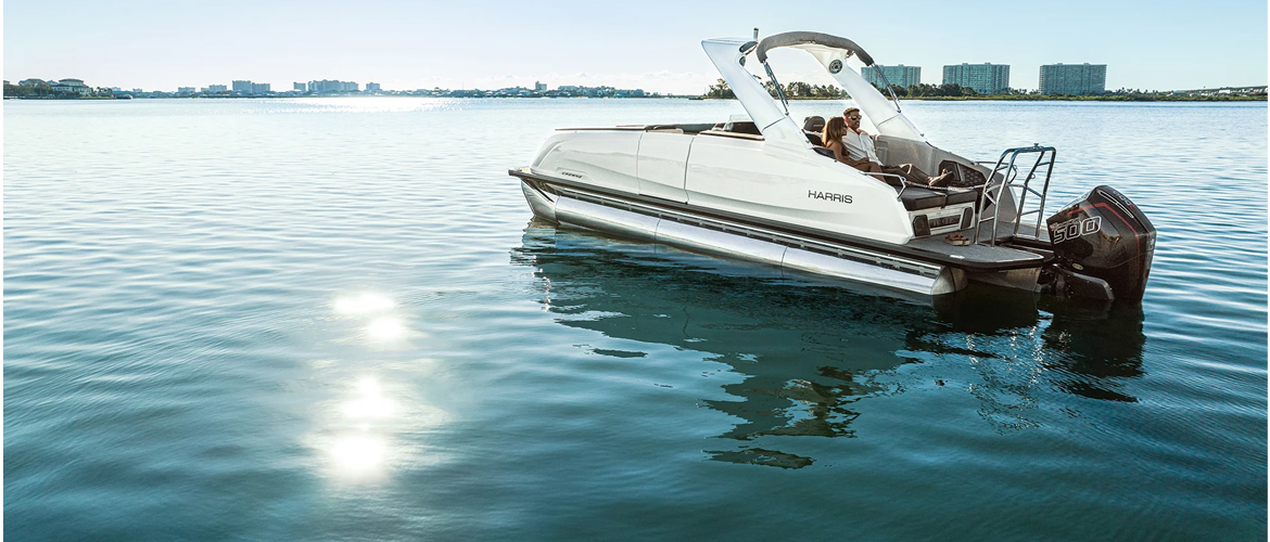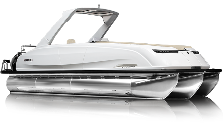 User-friendly boating technology is standard on the Crowne. You'll enjoy dual Simrad NSX12 screens and live-data connectivity through the My Harris mobile app, and you'll discover that onboard technology has never been more intuitive.
