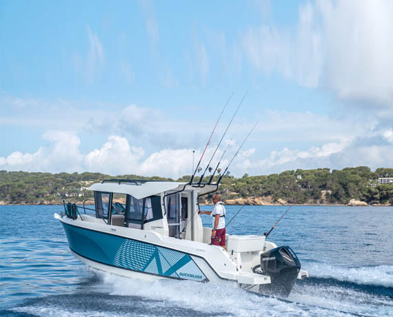 Fishing isn’t just a hobby, it’s a lifestyle, and that’s abundantly clear in the all-new 705 Pilothouse. A free-flowing cabin with an ergonomic, spacious design greet you for your fishing journey on board. The sleek, sporty hull is designed for the ultimate in comfort on open ocean or local lakes with best-in-class amenities. Control your vessel from the captain’s seat or the second helm on deck and find both fish and safe harbour with top-quality electronics. Engine options up to 225hp and an seven-person capacity ensure a fun trip for everyone on your next angling outing.