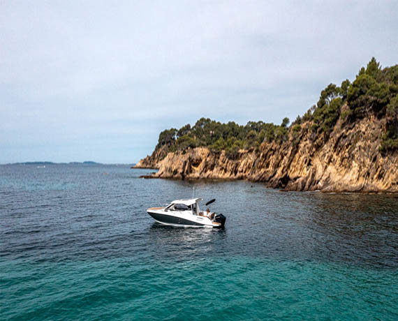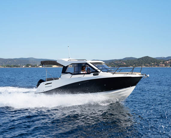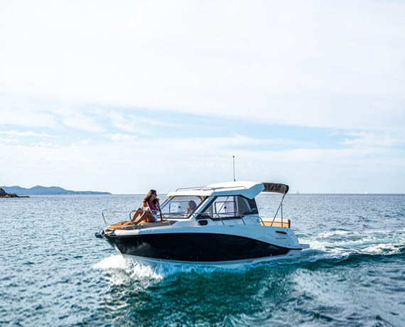 The Activ 705 Weekend is the most compact model in the Weekend range. It’s the only one that you can still transport on a trailer. Also, its size makes it easier to find a mooring space in a marina. At the same time, it does fit 8 people and 2 can spend the night.