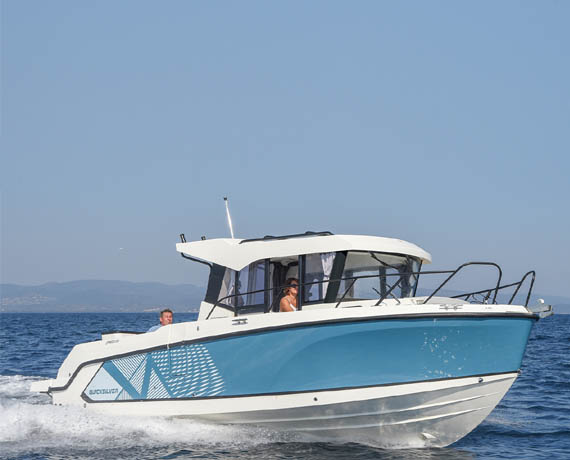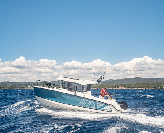 A new generation of Pilothouse models has arrived, tailored to the discerning angler. The curved hull portrays an aesthetically pleasing, sportier design. Centered around the sport you love, the 805 Pilothouse has features focused on a superior on-water experience such as an oxygenated fish locker to keep your bait fresh and your catch fresher. Reach your fishing spot faster with Mercury single and twin-engine options up to 350hp, and up to 9 people aboard. And for a premium experience, an Explorer version elevates your time on the water with more style and deluxe fishing features.